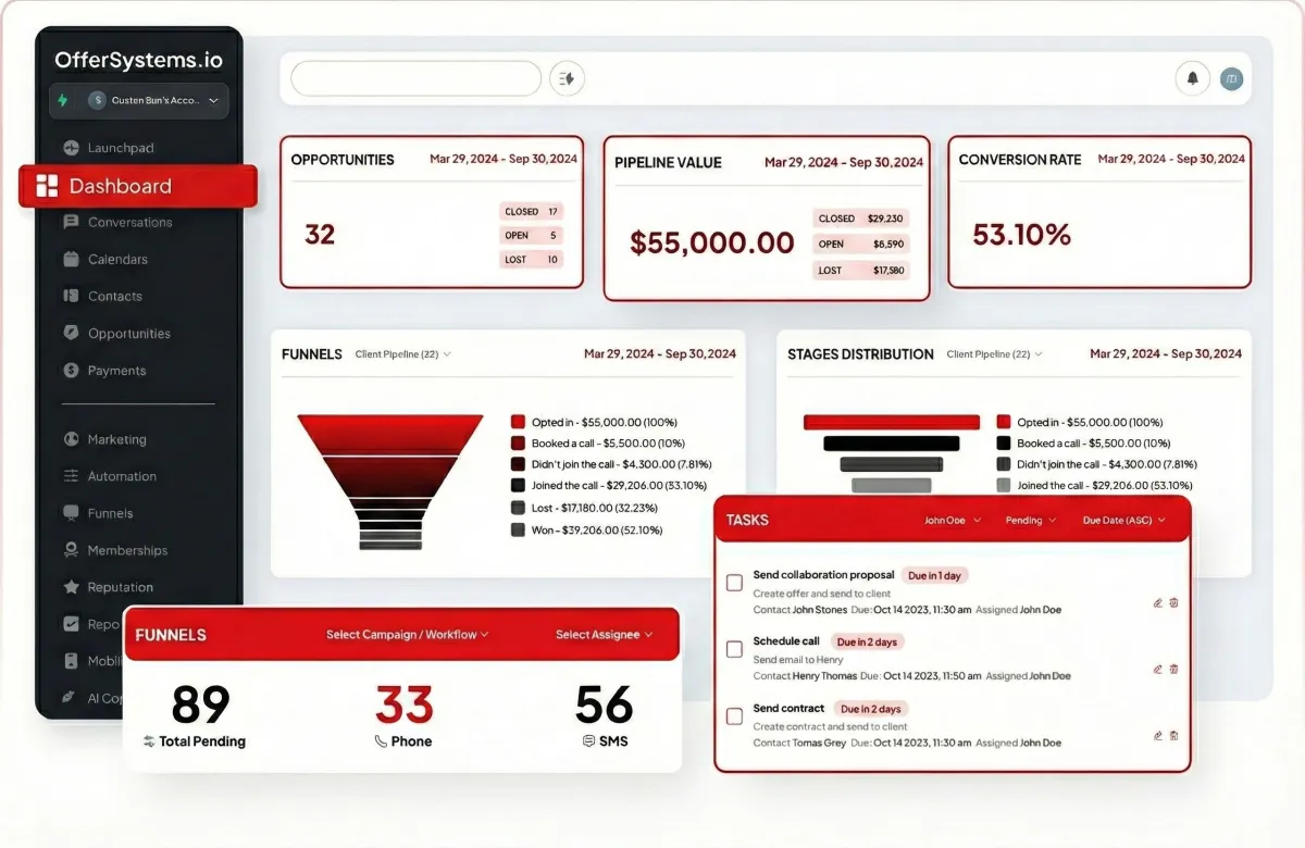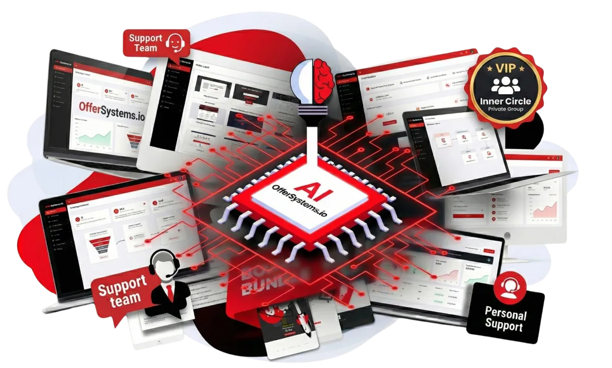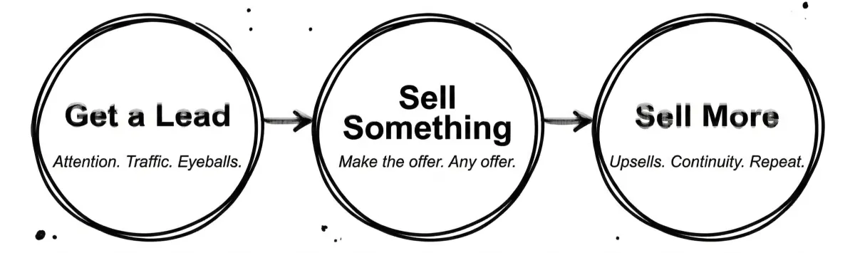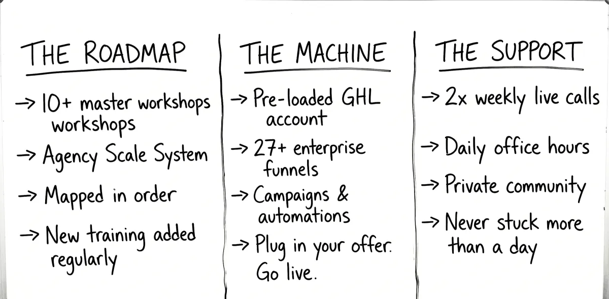 Sales pages. Order bumps. Upsell sequences. Email campaigns. Automation workflows. Lead generation systems. All already built. All already connected.
