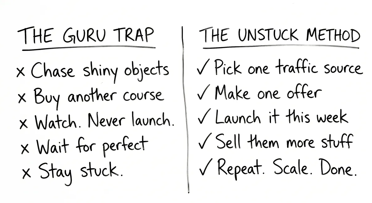 Spending hours trying to “figure out” funnels, emails, and tech