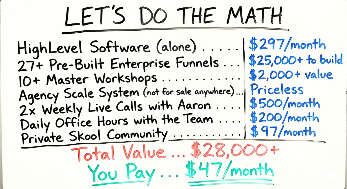 $47/month gets you everything. The trainings. The software. The community. The live calls.
